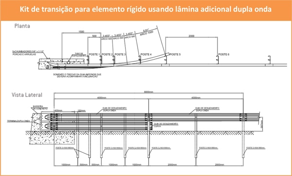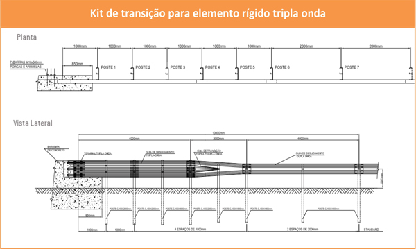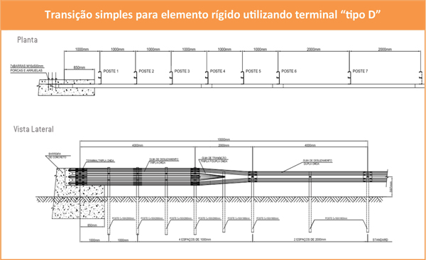 Terminal de saída aéreo: Composto por dois módulos de defensa com enrijecimento gradual (penúltima lâmina semi-rigida, última rígida) com terminal tipo A.
