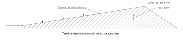 Deverá ser observada durante a implantação toda a área em frente do terminal e entre a pista e o terminal, a qual deverá manter declividade máxima de 10H:1V para o perfeito funcionando do dispositivo.